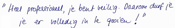 Zij weten als geen ander een vertrouwd klimaat te scheppen. Gaan niets uit de weg. En vanwege hun brede en diepe kennis en ervaring kunnen zij elk vraagstuk aan. De overige begeleiders zijn ook stuk voor stuk een kei op hun terrein.